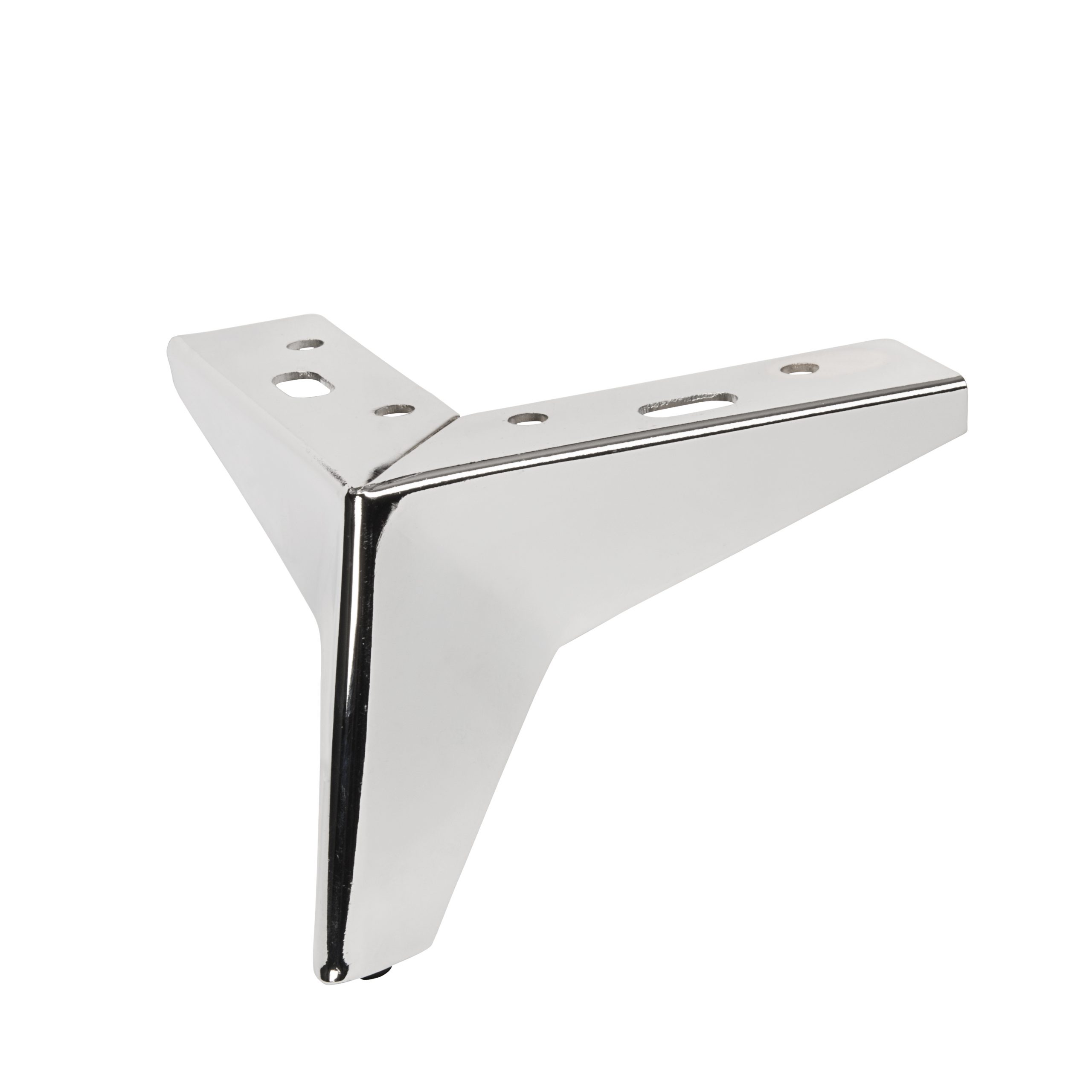 Noga meblowa, w kolorze srebrnym(chromowanym). Swoje zastosowanie znajdzie nie tylko w meblach skrzyniowych takich jak szafy czy komody, ale również w meblach tapicerowanych np. sofach lub narożnikach.